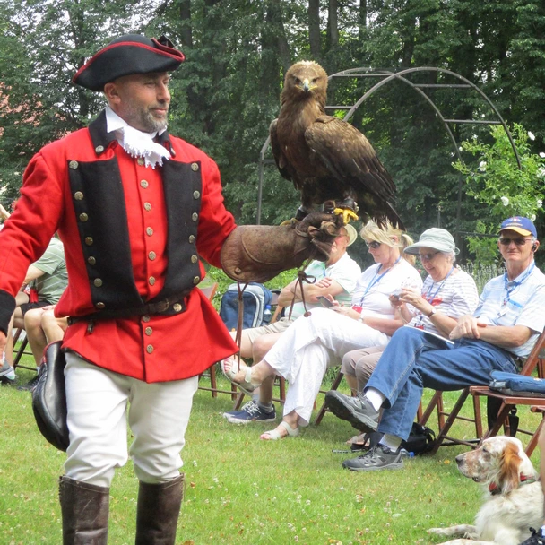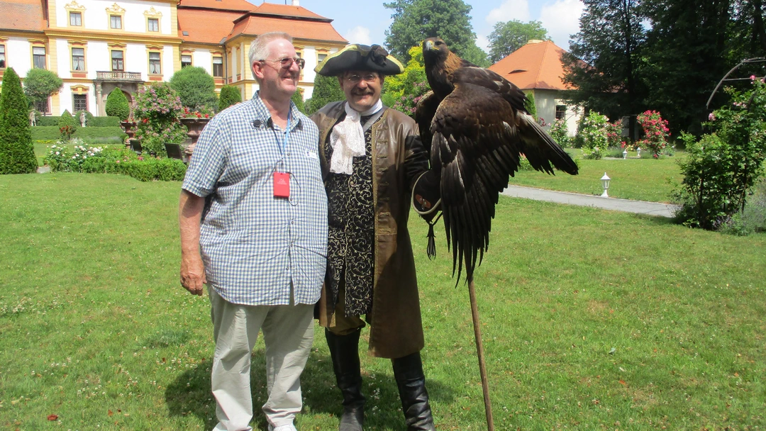 Friday: Up early again for another tour, this time to a Chateau, but was advised that we’d need to be up earlier tomorrow as our luggage would need to be outside our rooms by 6:30am. Breakfast, back to the room to clean up and then off to the bus for an hour drive to the 18th Century Baroque Chateau Jemniste. We’re here mainly to watch the falconry show. It’s very Medieval and probably a little upsetting for some but it was a very entertaining show.