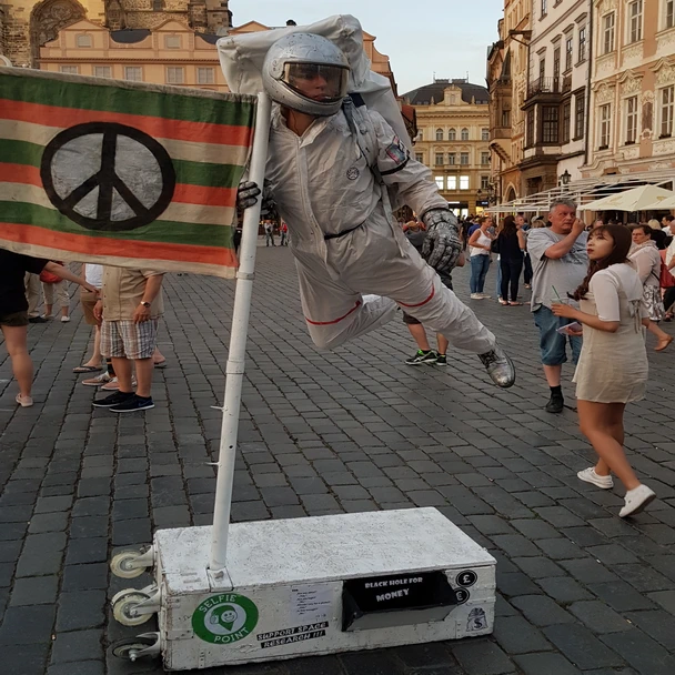 It’s been a long warm day and at the end of it when the bus returns to Prague we decide we’re going to have dinner in the Old Town Square and catch the Astronomical Clock chime the hour and checked out some of the busker type entertainment going on.