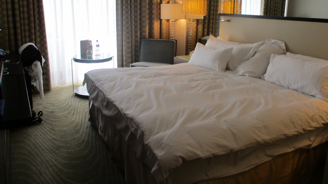 The beds fantastic, soft and firm, and a little bigger than a kingsize. Had tea in the hotels second restaurant, we couldn’t get into the Michelin Star Alcron. Great meal and service.