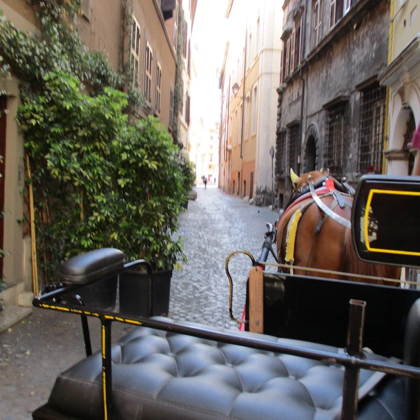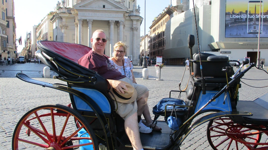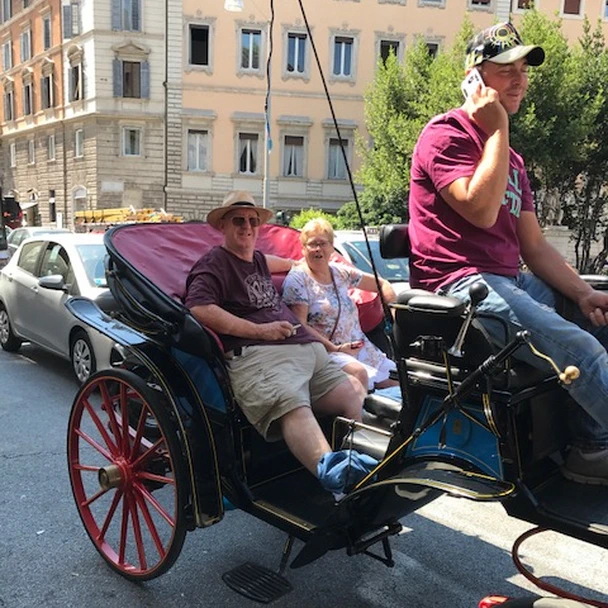 Off to the bus, but hangon here comes a horse and buggy. Roberto tells us his is the best way to tour Rome, he will take us places the bus can’t go as well as the normal tourist spots. And how much is this special tour, only €150 for 1 1/2 hour. and that’s what we did.