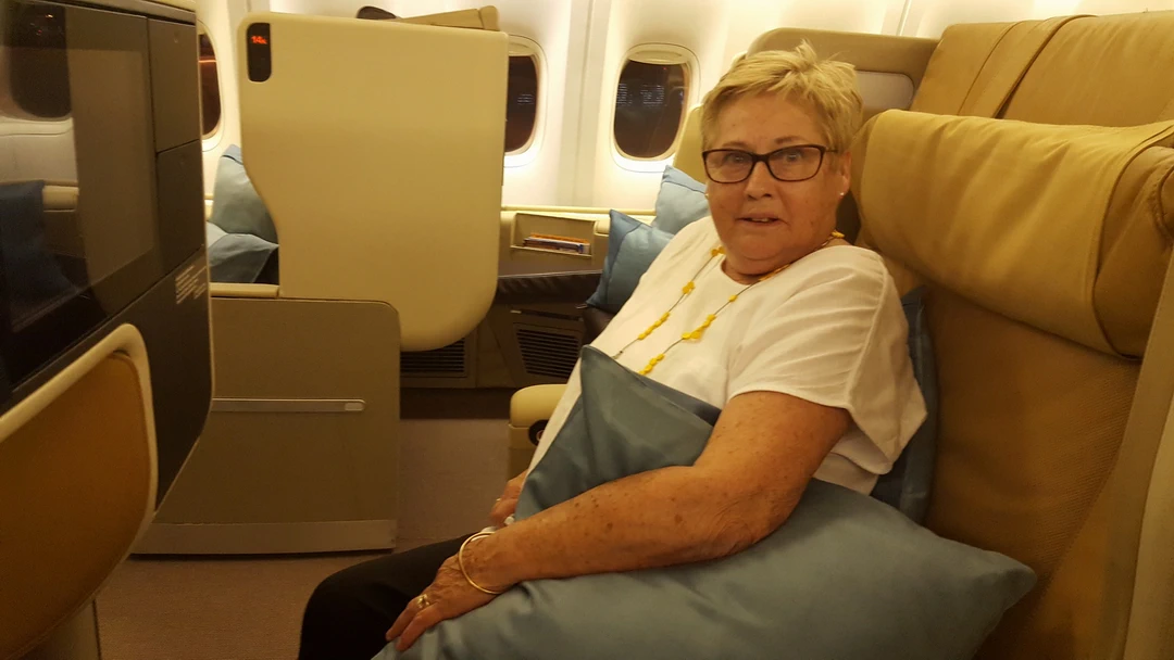 On the flight to Rome, only 12 1/2 hours away. We slept quite a bit of it. The seats do convert to a bed but we found it more comfortable to just recline the seats. The beds looked hard and not designed for someone my ‘height’.
